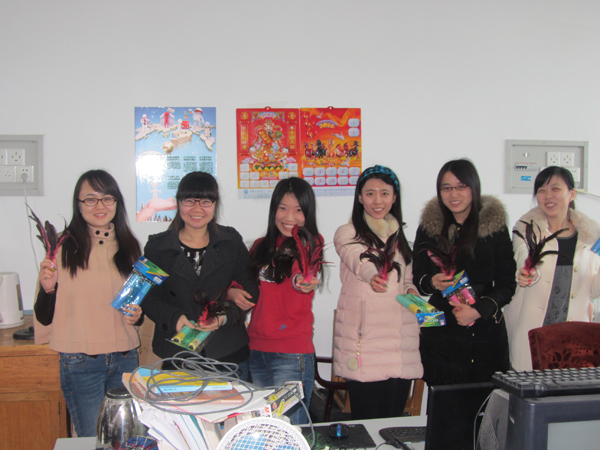 3月7日下午,公司研究生会的代表同学按照名单抵达全院所有研究生工作室,转达了学院男生的深深祝福,并将精心采购的毽子和跳绳等健身用品送到女生手中,希望她们能在紧张的学习和科研工作之余,合理参加身体锻炼,做到“每天锻炼一小时,健康生活一辈子”。