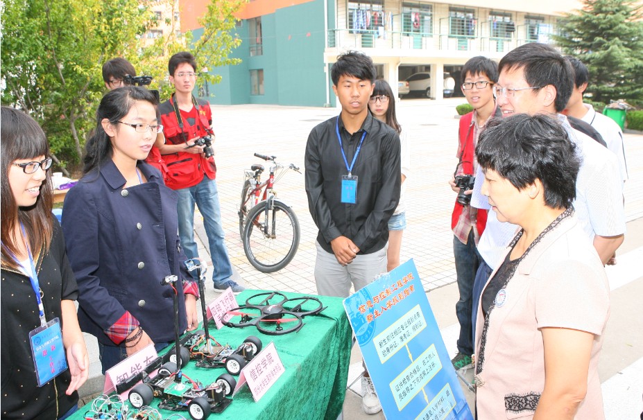 校领导视察迎新现场老员工课外科技作品展