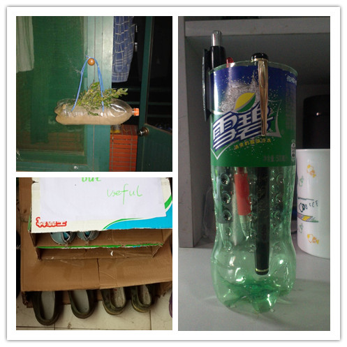 为弘扬中华民族勤俭节约的传统美德,锻炼同学们的动手能力、丰富同学们的课余生活,电气13-3班同学于10月26日至11月1日之间,以宿舍为单位,开展“奇思妙想变废为宝”趣味废品再利用的手工制作活动。活动过程中,各宿舍都开动脑筋,为身边的“废品”发现了新的价值。废弃饮料瓶做的笔筒、废旧奶箱做的鞋架、饮料瓶集成的凳子、饮料瓶做的花盆……这些创意都来自电气13-3班同学们的奇思妙想。“让我们的笔有安身之处,让他们感受到我们对他们的爱。而且还能废物再利用,这真是极好的。”10-322宿舍的金鑫同学说。“我们的鞋子有了遮风避雨的小家”14-437的女生们指着她们的鞋架说。“我们希望学校能有更多的伙伴们加入变废为宝的制作活动中,用自己的双手创造“奇迹”,用行动践行勤俭节约。”电气13-3班班长说。