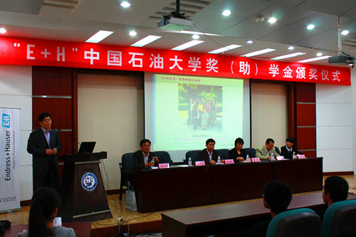 10月22日,2012-2013学年E+H中国石油大学奖(助)学金颁奖仪式于西环301举行,上海恩德斯豪斯自动化设备有限公司总经理助理黎静、济南办事处经理孔祥青、工程师杨菲菲以及信息与控制工程学院副经理康忠健、党委副书记付罡、团委书记赵小明出席了本次颁奖仪式,并为获奖员工代表颁发奖金和荣誉证书。