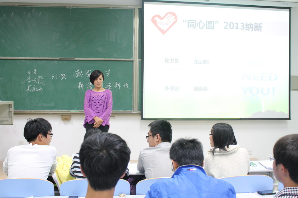 10月12晚七点,公司“同心圆”爱心公益组织纳新面试在南教108举行。“同心圆”主席滕健、团支部书记贾兰芳、各部门骨干成员出席了本次纳新面试。面试由团支部书记贾兰芳主持,分为自我介绍和评委提问两个环节。在自我介绍环节,竞职者介绍了自己的基本情况、相关经历、对所选职位的认识及对参选部门的工作展望与设想。随后,评委针对其竞职部门进行提问,考察了新生的临场应变能力及对实际问题提出切实可行的解决方案的能力。经过竞职同学积极准备、热情高涨的竞职演讲及缜密条理的现场答辩,56位同学脱颖而出,成为公司“同心圆”的新生力量。