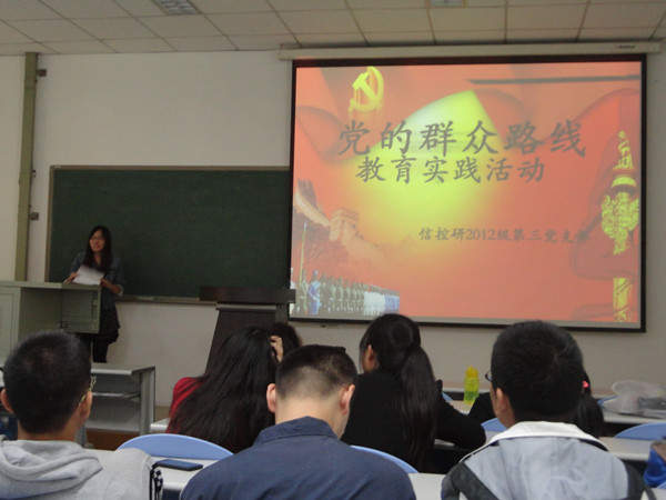 首先,支部书记曹琪带领大家回溯了自建党以来,群众路线作为我们党的生命线和根本工作路线,贯穿始终,支部全体成员观看了“把群众放在心上”的教育宣传片。之后,支部对6月18日在北京召开的党的群众路线教育实践活动进行了深入的学习。支部成员深入讨论了“四风”问题的危害以及“照镜子,正衣冠,洗洗澡,治治病”的必要性。班长陈宇同学将这种自我净化、自我完善、自我革新、自我提高的方法,与同学们所在控制专业的反馈控制进行了对比和介绍,有效激发了同学们的学习兴趣,也帮助支部成员更加深入的理解了会议精神。最后,会议要求支部成员通过开展批评和自我批评的,坚持理论联系实际,把思想认识提高落实到行动上来,有效强化自身的科研能力。