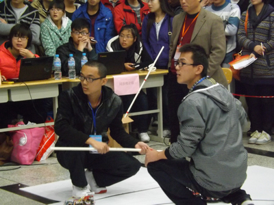 山东省“中国银行杯”机器人大赛由山东省科学技术协会、山东省委高校工委、山东省科技厅、共青团山东省委联合会主办,分高校组、中小学组和企业组进行。大赛每年举办一次,今年为首届。首届高校组比赛由山东科技大学、山东省机器人研究会承办,设自选项目及同步机器人、双足竞步机器人、智能避障避险小车3个指定项目。