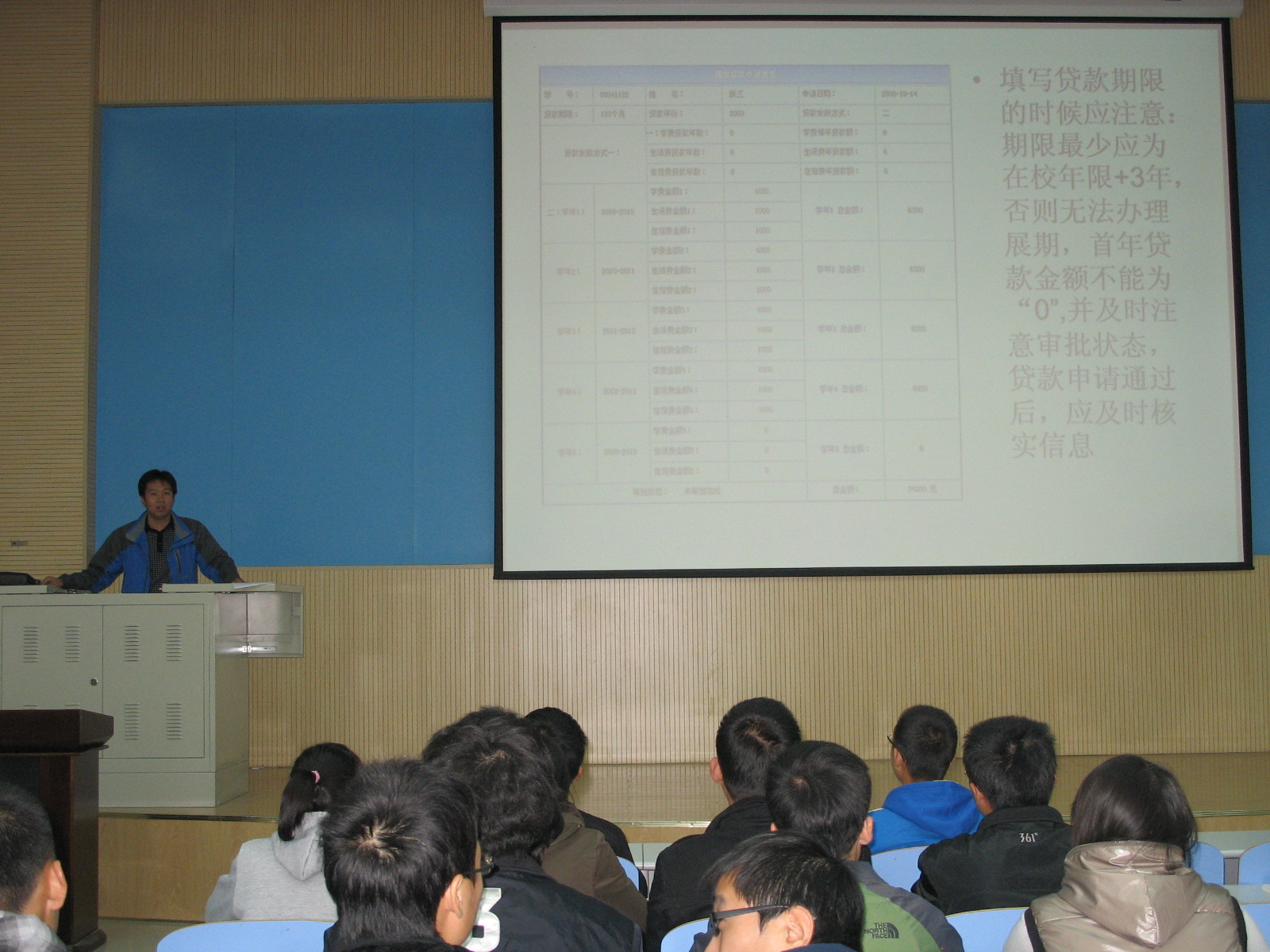 近日,学校全面启动助学贷款工作。为进一步贯彻落实学校助学贷款工作精神,加深同学们对相关政策的了解,确保每名同学的贷款申请都能顺利通过,11月11日,公司在南教300召开本年度新增贷款政策宣讲会。会议由石彬老师主持,新申请贷款的同学参加了此次会议。会上石彬老师对学校今年的贷款政策进行了详细的解读,对贷款名额的下放进行了说明。同时,石老师对贷款申请流程,注意事项,毕业后的还款等做出了讲解,对助学贷款的系统使用现场进行了演示,认真解答了员工们的疑问。通过本次宣讲会,员工对助学贷款的相关事宜有了更加全面的了解,为下一步助学贷款工作的顺利开展打下了坚实的基础。