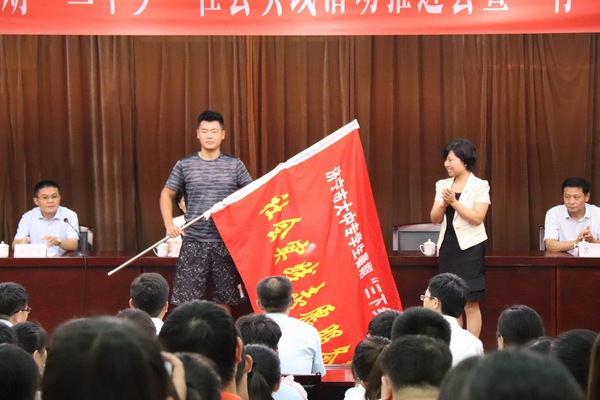 会议伊始,泗水县委常委、统战部部长李翠玲向活动致辞,“青年一代,是国家的希望,希望广大青年学子们珍惜这次实践机会。”之后,李雪梅书记为暑期“三下乡”社会实践活动服务授旗,并由烟火支教队队长吴浩威代表志愿者上台接旗。授旗完毕后,李翠玲与赵鑫共同为“青·志学堂”揭牌。团县委书记贺鹏代表团县委接受济宁技师学院向泗水团县委捐赠的9万元助学金。由“启梦济宁”支教队队长刘雨代表志愿者上台接受团县委向“三下乡”暑期社会实践活动志愿者捐赠的保险单。山东科技大学“青春之光”支教队队长尚余祥代表各服务团队上台发言,表达了各团队志愿者的会努力做好支教工作的决心。活动最后,由赵鑫发表了讲话,赵鑫指出:这次活动是深入贯彻落实习近平总书记关于青年工作重要思想和团十八大精神的具体举措,是深化农村留守儿童关爱工作的重要抓手。打造“青·志学堂”这个项目品牌是对关爱留守儿童工作在资源整合等方面的大胆尝试和有益探索。“、