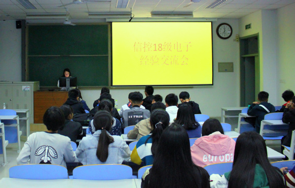 10月12日晚,信息与控制工程学院电子专业于南教212教室举办学习经验交流会。电子专业15级员工许燕、16级李寿杰、17级李永康分别就学习、科技创新方面进行了经验分享,活动电子1701班王怡宁主持,2018级电子专业全体员工参加。
