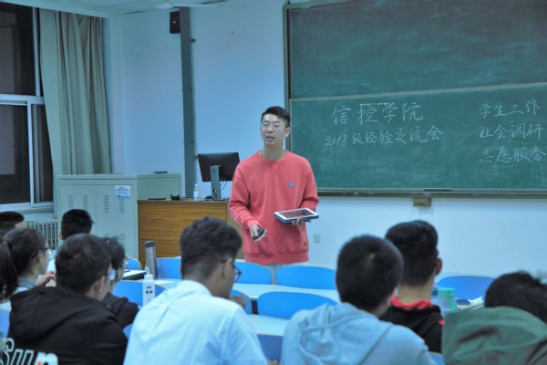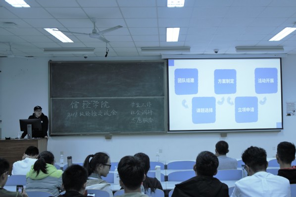 10月13日晚,在南教楼203教室信控院召开了18级经验交流会。本次交流会邀请了调研中心的员工陈一元、李金泽和信控院员工会的郝江玮,他们分别从社会实践、员工工作两个方面为18级新生交流相关经验。活动由王文涛主持,2018级信控院新生参加。
