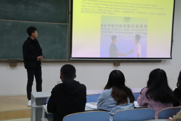 此次初赛以“上合峰会”为主题,并由信控学院学习部副部长王宇浩主持,共有来自信控学院的24位演讲者参赛。比赛开始前,参赛选手提前到场,在主持人的组织下进行现场抽签,决定比赛的顺序。抽签完毕后,由王宇浩进行开幕致辞,介绍到场评委,并宣读比赛的规则及评分细则。比赛开始,各位选手按照抽签顺序通过PPT、手稿、脱稿等多种形式依次上台进行演讲。演讲过程中,各选手自信、动情的演讲收获了现场观众和评委热烈的掌声。所有选手演讲完毕后,由现场评委根据各选手得分进行排名,来自测控1701班的邹鋆以自信、激昂的演讲获得了本次比赛的最高分,取得了初赛第一名。最终,依据得分排名,共有15名选手进入接下来的决赛。