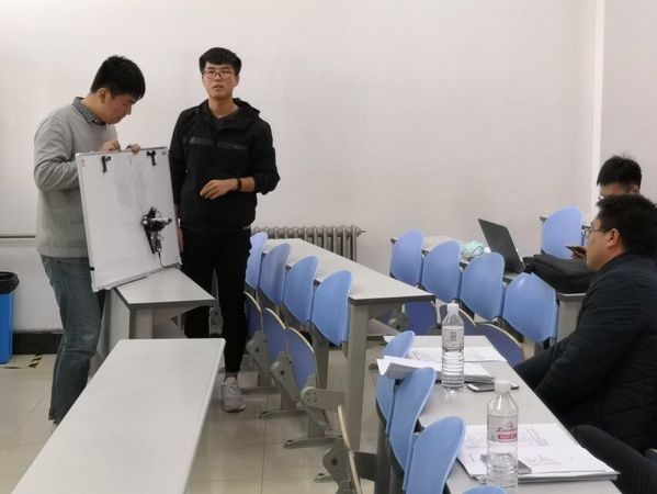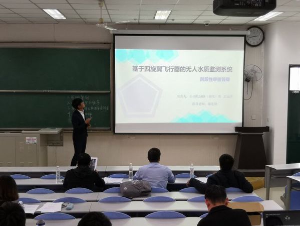 答辩过程中,各项目人员有条不絮地进行项目阶段性进展汇报,专家组根据具体内容提出质询问题。自动化1605班员工袁铭答辩时说到:“我们所研究的项目是Tripod机器人的路径规划与运动控制,对Tripod机器人进行运动学模型建立,并研究求解最优抓取顺序和最优路径规划问题,分别利用贪心算法、遗传算法和动态规划等算法进行求解,得到了最优解。”之后专家组针对项目内容进行提问,并分析了下一步的开展计划,给出了合理性的建议。部分项目组进展很快,已经做出实物设备,以视频的方式进行了成果展示。