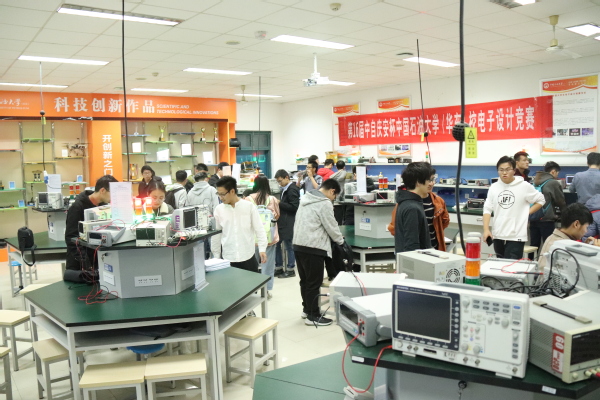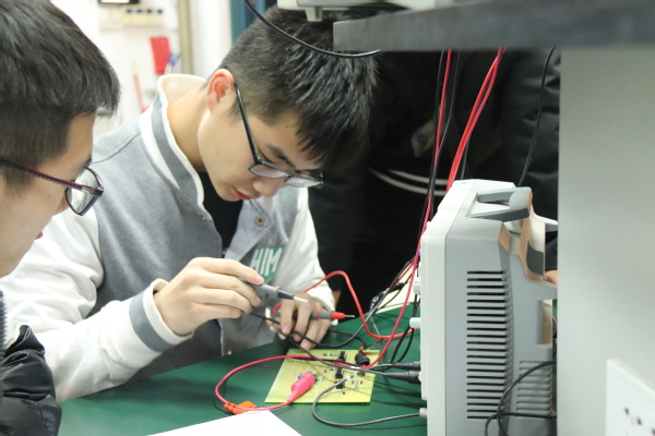 本次电子设计大赛的题目分别由李超、薛焕昇、吴鸿声、王远泽四位同学命题,并由王远泽、薛焕昇、吴鸿声、张志涛、俞心怡、付发六位同学担任评委验收每个队伍的设计报告与实物,然后进行现场打分。活动开始时,每个队伍有序的在教室门外排队,进行验收的队伍按照评委的要求反复调试自己的作品,以求得更完美的波形,更完美的展示。验收过程中,每个评委不仅仔细评判作品质量,更对每个队伍对作品的设计,调试等方面提出建议,并实地进行指导,让同学们在展示的过程中获得进步。太阳成集团电子设计大赛已经成功举办了十五届,是信控学院科技协会的一大特色比赛,每年都能吸引大量的信控学院和其他学院的员工来参赛,第十届电子设计竞赛共吸引两百支来自不同专业不同年级的队伍来参赛,参赛人数接近人。