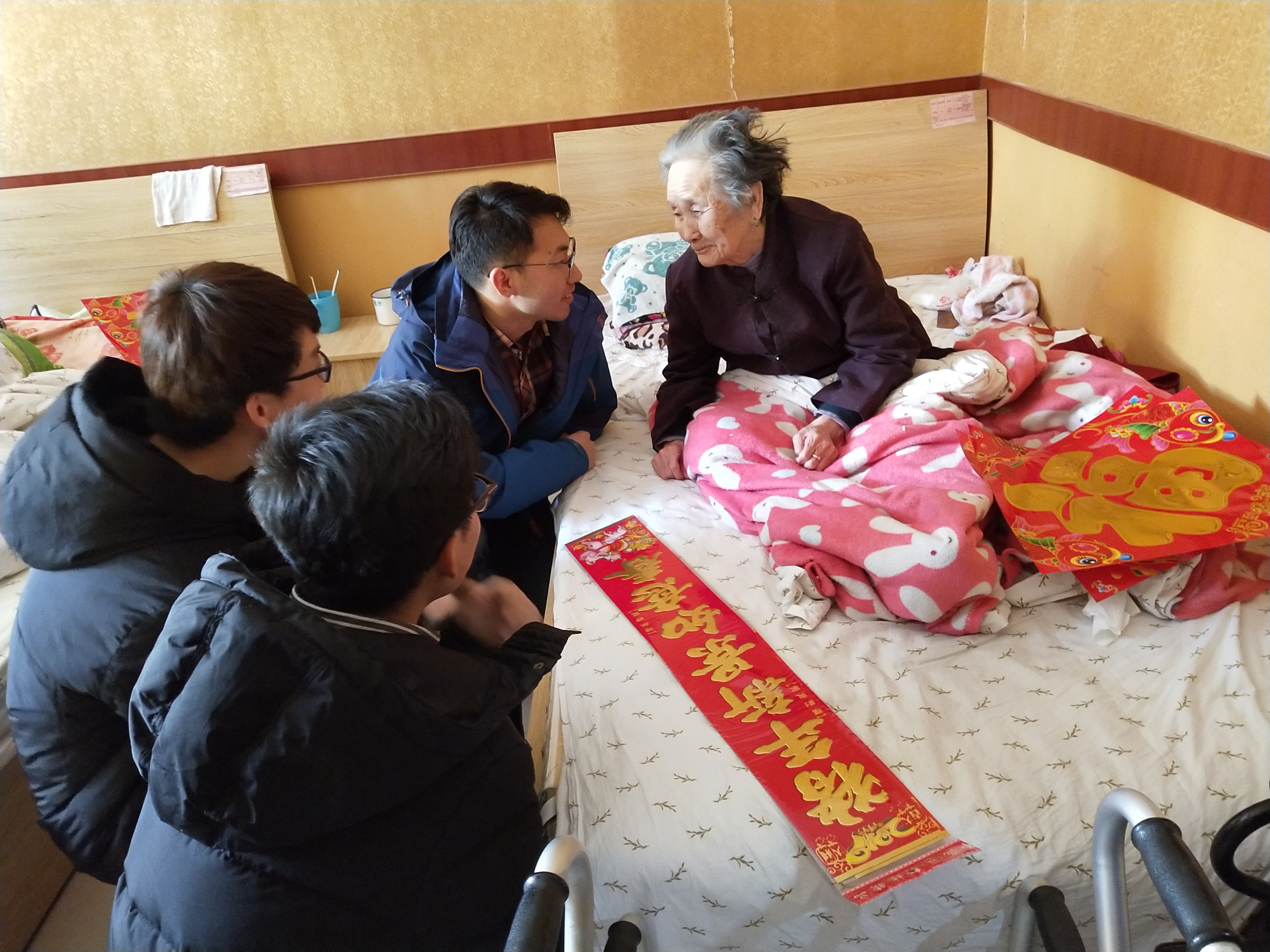 员工们还组织前往“老党员之家”——青岛市黄岛区福爱老年公寓,走进老党员的生活,与他们进行交流。“这四十年的变化可不得了,就拿我自己来说,我开了很多年的船,我感觉航海这方面的发展就很不得了。改革开放初期时候我们航海时方向都是通过我们常年日积月累的经验来判断的,但现在就不一样了,各种导航系统全面覆盖,出门用手机就可以定位,相比当年真的是太不可思议了。” 一位从事多年航海生涯的老爷爷兴奋地说道。同时,员工们也给老党员们介绍了现今的发展,例如移动支付的普及,高铁的运营、VR虚拟体验等新兴事物。最后员工们为老人们购置了拖把、扫帚等生活用品,并为每间房间贴上了对联和福字,为老人们送上新年祝福。