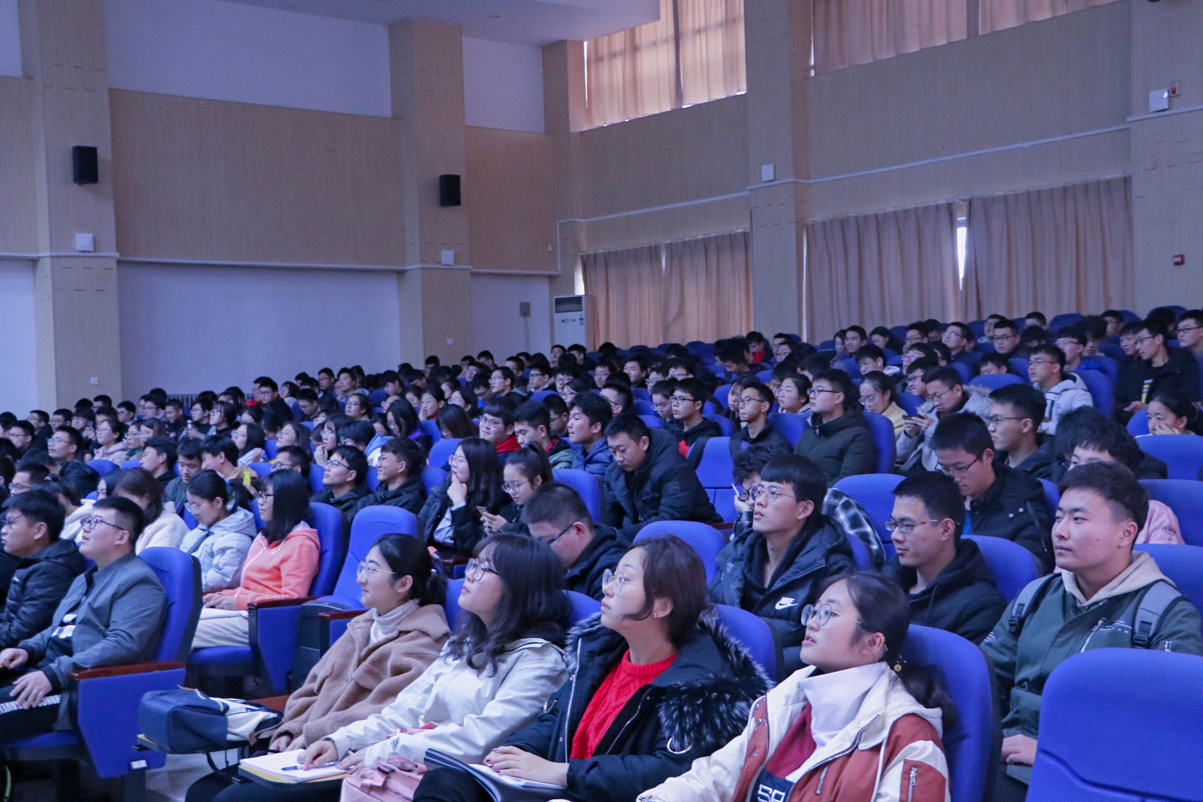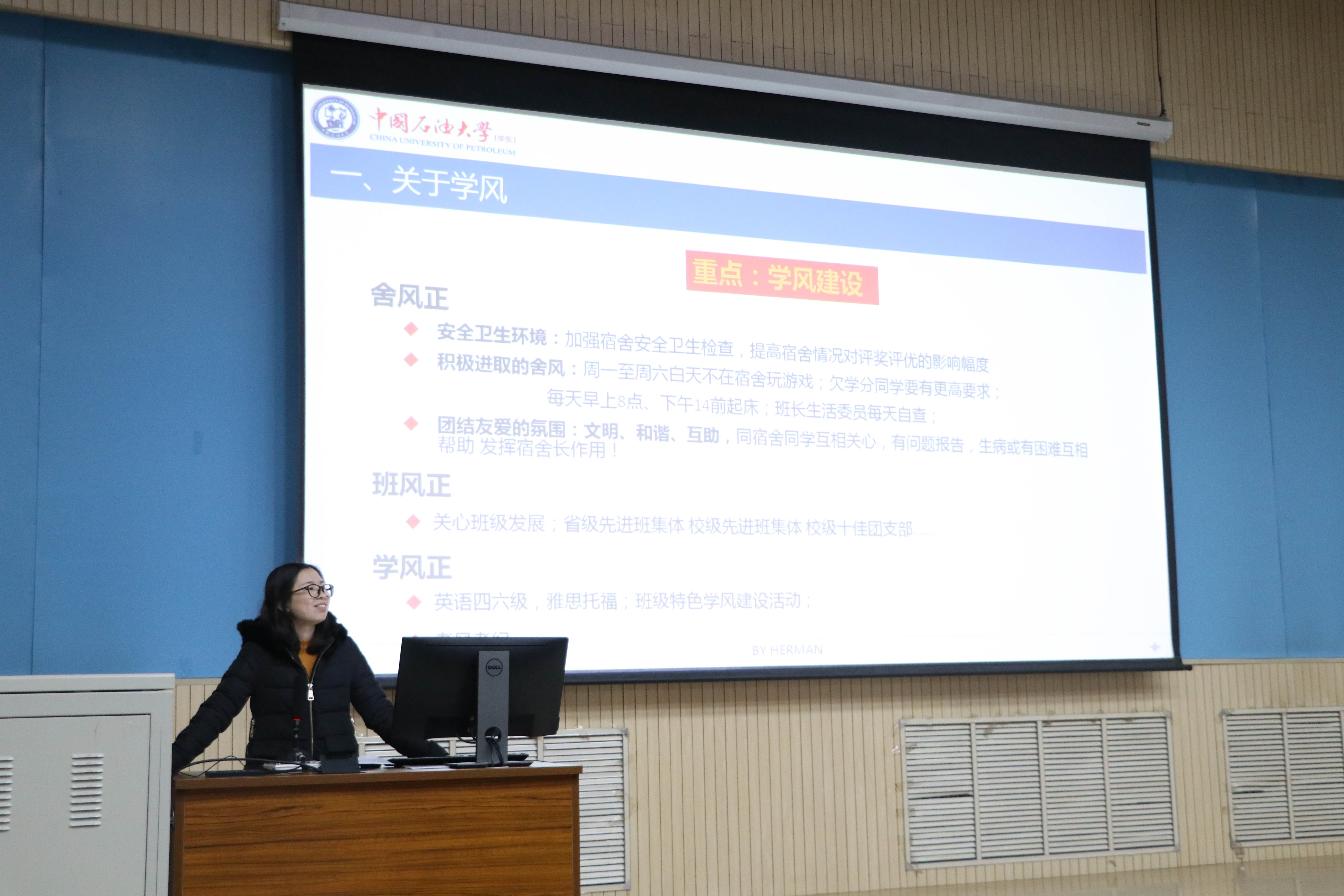 3月1日,信控学院2018级在南教楼100教室召开新学期年级大会,2018级辅导员王力禾、闫娜和2018级全体成员参加大会。