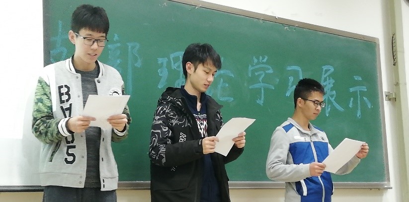 理论学习展示活动的环节为班内分组展示学习成果,团支部共分为六组,每组的成员都认真交流讨论,展现小组风采。 迟瀚扬组朗诵:“科技创新,改变了人类的生活,推动着历史的发展科技创新,是社会进步的动力,是强国富民的关键!”洪亮的声音体现了他们对中国科技发展的信心;蓝元组朗诵《我相信我自己》铿锵有力,赢得大家的掌声连连。各组利用诗歌朗诵、歌曲合唱、视频剪辑等等不同的形式来展示他们的学习成果,现场气氛活跃。