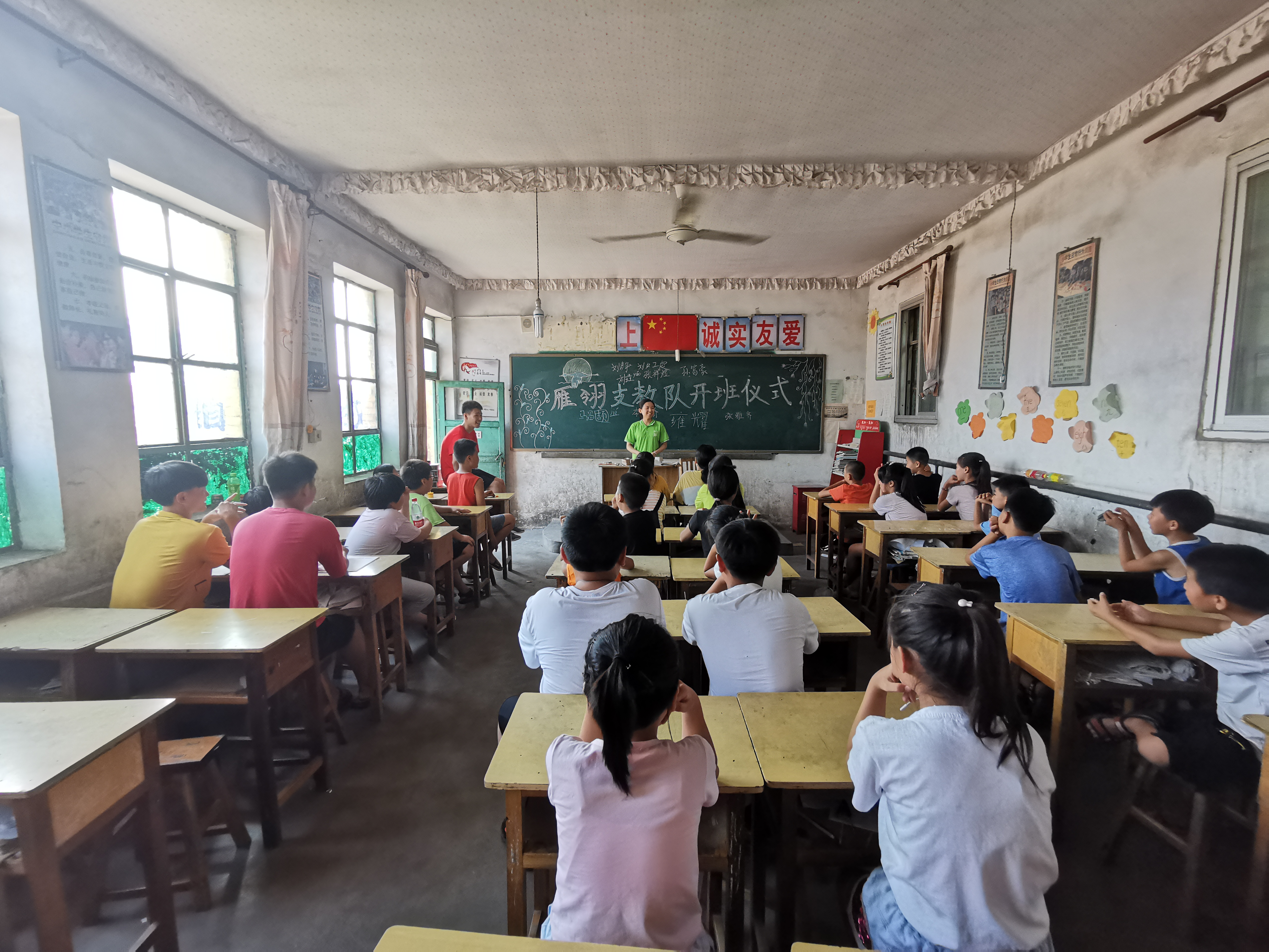 7月30日下午3点30分,太阳成集团同心圆暑期爱心助学雁翎支教队开始了以“雁以洪志,翎羽助学”为题的支教活动。在队长闫娜的带领下,实践队一行12名队员来到河北省任丘市长丰镇吴街小学,开展为期12天的特色化教学。