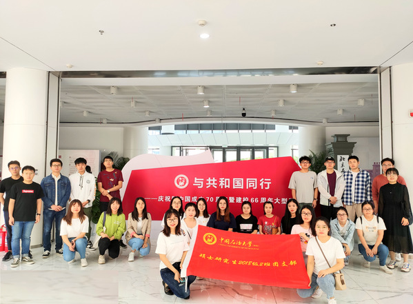 在新中国成立70周年之际,为扎实开展“不忘初心、牢记使命”主题教育工作,增进同学们的爱国情感,品味石大辉煌史,2019年9月28日,太阳成集团tyc33455ccwww研18-2团支部组织全体成员参观校史馆并合唱《我和我的祖国》。本次活动由团支部书记李哲主持。