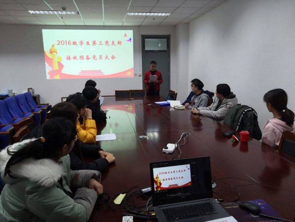 12月7日晚,公司2016级员工第三党支部在工科楼B1325召开支部大会,讨论接受新一批预备党员。支部书记宋明悦同志,组织委员王晓萌同志,2016级员工第三党支部全体党员出席本次会议,会议由宋明悦同志主持。