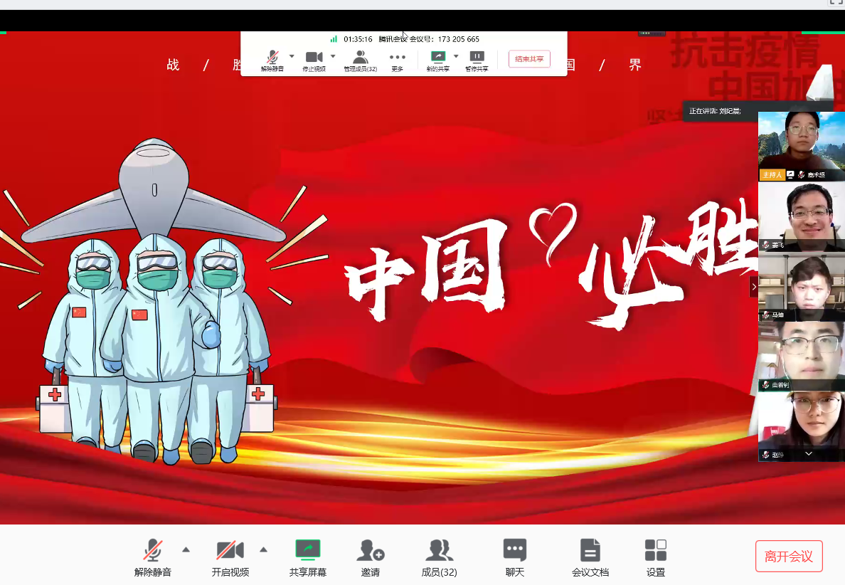 会议伊始,鹿术超带领大家一块学习习近平总书记给北京大学援鄂医疗队全体“90后”党员回信的内容,并且观看了相关视频。从回信中可以看出,总书记对援鄂医疗队全体以及奋斗在疫情防控各条战线上的广大青年,表达了诚挚的问候,并且激励广大青年不惧风雨、勇挑重担,让青春在党和人民最需要的地方绽放绚丽之花,同学们深感在努力提升自己的同时也要为国家和人民尽一点自己的微薄之力。接下来,支部成员共同学习了我国与西方对待疫情采取的不同措施以及取得的成果,观看《中国方法到底可以复制吗?》视频。最后,大家对近期我国和西方各国防疫情况结合自身感受展开了大讨论。姜飞老师指出:“我国防控疫情都是以人为本的,通过此次疫情也可以看出,我们党和国家对人民生命健康的重视。”