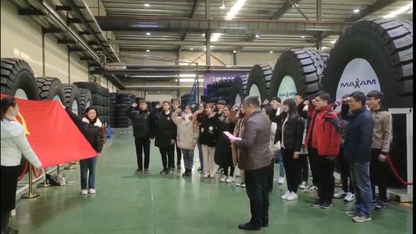 在特种轮胎制造工厂,公司新发展党员于“巨型工程子午胎”前,在公司党委副书记苏兴的带领下进行了庄严宣誓。此次宣誓大大激励了党员们奋发拼搏的决心,坚定了为共产主义事业而奋斗终身的信念。