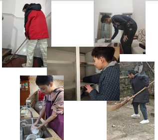 队长朱中鹏在老家中为家人清洗了碗碟并在柜子中按照大小分类摆放整齐,将厨房橱柜整理得井井有序。队员周翼在家中将自己的家庭整理干净,将老家的院子中的落叶,垃圾等清扫干净,为老家打造了良好舒适的环境。队员刘日奕将家中一楼至三楼的玻璃和楼梯扶手均清洗干净,并用拖把将楼梯的瓷砖仔细地拖干净。队员赵子翔在用过午饭以后为家人洗碗,并将家中的玻璃都认真清洗了一遍。使家中更加阳光,家庭氛围更加浓厚。队员朱资菡在家中进行了大扫除,在午饭过后将各类调料收拾整理,在架子上摆好,并将厨房常年积攒的油污用肥皂水处理干净。
