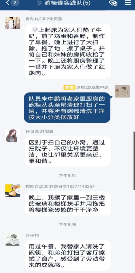 队员在实践交流群分享大扫除内容