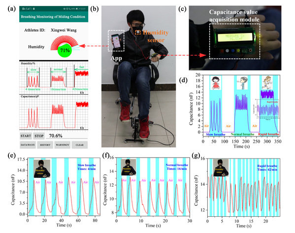 高增敏的微纳湿敏传感器对于环境监测、智慧农业、医疗健康以及智能传感网领域具有重要的意义。但当前大多数湿敏传感器存在灵敏度差、测量范围窄、响应时间长等问题,传统的湿度检测方法由于技术限制已无法满足现代生产生活对湿度检测的高要求,发展适用于诸多领域的质优价廉的高增敏微纳传感器,一直是人们所追求的目标与面临的挑战。针对微纳湿敏传感器领域提出的高增敏、快速探测、低功耗、微型便携等关键问题,宫礼坤在张冬至教授指导下进行实验研究,提出了一种基于氧化铈/石墨碳氮化物(CeO2/g-C3N4)纳米复合材料的柔性可穿戴湿度传感器。富含缺陷石墨相氮化碳多孔结构在保留原有特性的同时,增加了比表面积和新的活性边缘,具有半导体性能好、环境友好、廉价易得等优点,不仅可以增大水分子接触面积,而且为水分子吸附提供了更多的活性位点。与原始的g-C3N4或CeO2材料相比,CeO2/g-C3N4传感器具有更宽的监测范围以及更快和可逆的室温湿敏响应。当相对湿度从0%增加到97%时,传感器的响应值达到6573。与传统的湿度传感器相比,CeO2/g-C3N4纳米复合传感器在灵敏度(959.5pf/%RH)、响应性、稳定性和恢复时间等方面具有明显的优势。同时设计了便携式的湿度电容测量和显示系统,并与移动智能手机和无线通信技术兼容。在人体呼吸和皮肤干燥监测方面具有多功能应用,在柔性、可穿戴电子领域具有广阔的应用前景。