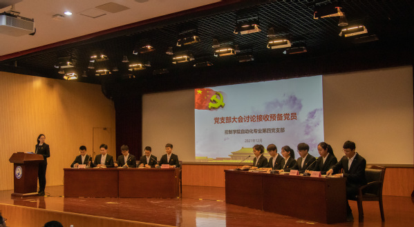 2021年12月11日,学院自动化专业第四党支部参加了2021年党支部书记暨专职组织员培训班情景模拟教学环节,支部筹备并现场展示“支部大会讨论接收预备党员”流程。