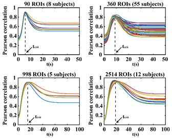 针对上述问题,该研究基于高阶超图和Laplacian理论提出了一种时空变化的超图Laplacian扩散模型(STV-HGLD)来描述静息态下人脑神经活动信号的传播。该模型基于神经元时序依赖突触可塑性(STDP)理论将人脑结构网络的超图Laplacian表示嵌入到波动方程中,并给出了该波动方程的解析解。理论结果表明,大脑皮层脑区之间的动态耦合是以一种高斯波的形式传播,其谐波由大脑结构高阶超图Laplacian的本征函数产生,而波动频率由大脑结构连接Laplacian的本征值决定。该发现在四个具有不同分辨率的脑连接数据库上进行了实验验证,结果表明所提模型可以精确的对静息态下大脑功能网络连接进行预测,所预测的脑功能连接和实测的脑功能连接之间的Pearson相关系数在四个数据库中都达到了0.8以上。