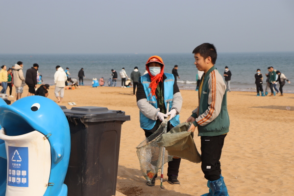 活动开始前,同学们领取了手套和鞋套,并确定了自己的净滩区域。随后便开始清理金沙滩上的食品包装袋、塑料袋、塑料瓶、纸巾等垃圾。在清理过程中,同学们积极热情,耐心细致,小组合作完成任务。“这次活动真的很有意义,我们不仅感受到了金沙滩的美丽,也为保护金沙滩的环境出了自己的一份力量。”参与本次活动的同学激动地说。