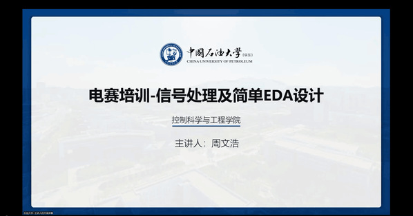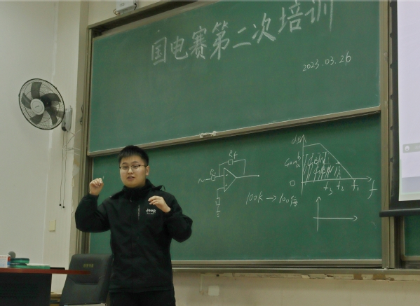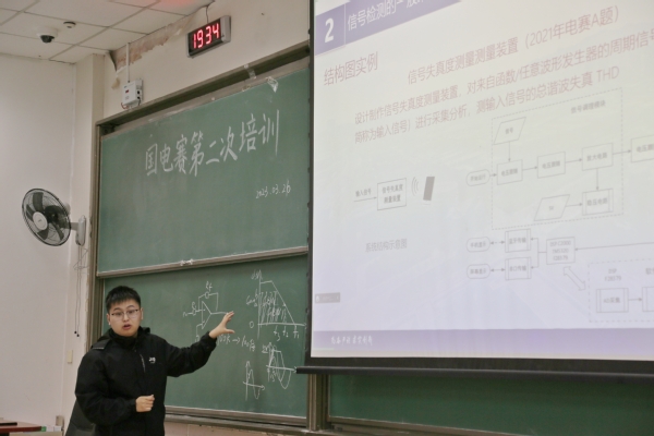 讲座伊始,周文浩从弱信号处理系统结构入手进行了详细的讲解,对曾经在省国电赛中出现过的弱信号处理赛题进行了简单的回顾,将实际问题分析与设计案例融入其中,对其中关键的电路设计问题给出了解决方案,将理论与实践结合。周文浩强调到,只有赛前的刻苦积累才能换来赛时的轻松应对,电路设计能力的提升不在一朝一夕,而是在长期的实践练习中得到升华。最后,他为参与本次培训的同学答疑解惑,并对今年参加国电赛的同学们给予了鼓励。
