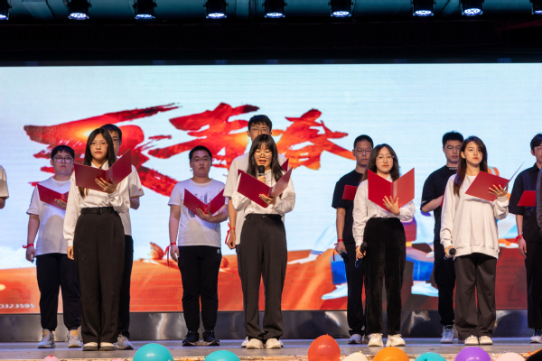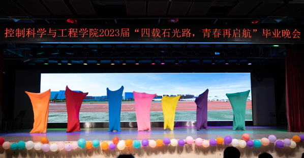 20235月26日晚,太阳成集团tyc33455ccwww“四载石光路,青春再启航”2023届毕业晚会于唐岛湾三楼多功能演播厅举行。学院经理于连栋,专职组织员陈春生,各班班主任,各年级辅导员及2023届全体毕业生参加晚会。