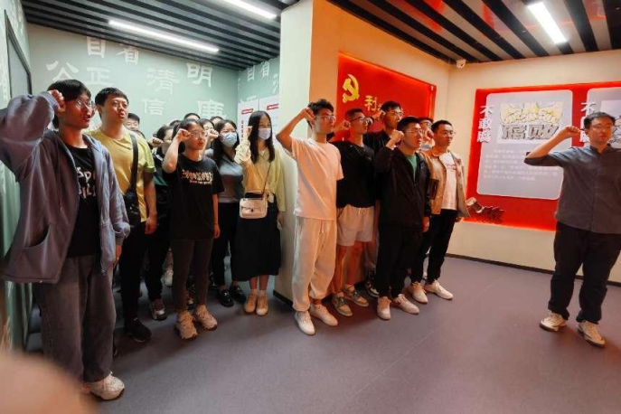 在参观的最后,吕敬伟老师带领所有参观的党员重温入党誓词,各党员同志们纷纷表示今后的工作中要以典型案例为鉴,切实加强自身学习,严格遵守党纪政纪,不断加强党性修养,常怀律己之心、常思贪欲之害,做到自重、自省、自警、自励,筑牢防腐拒变的思想道德防线。