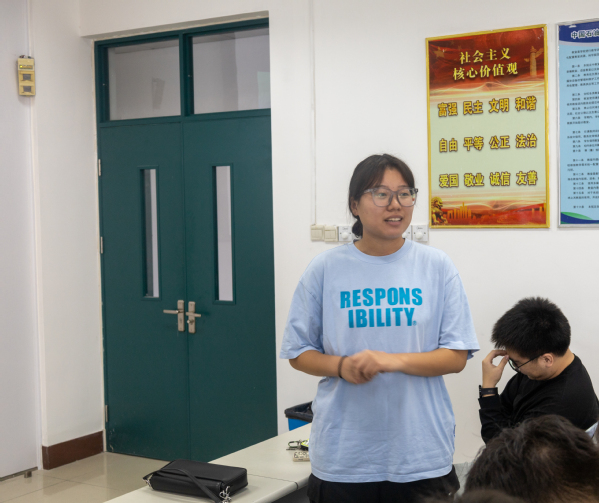 图四 新闻工作室记者部副部长王意洋自我介绍 刘瀚文摄
