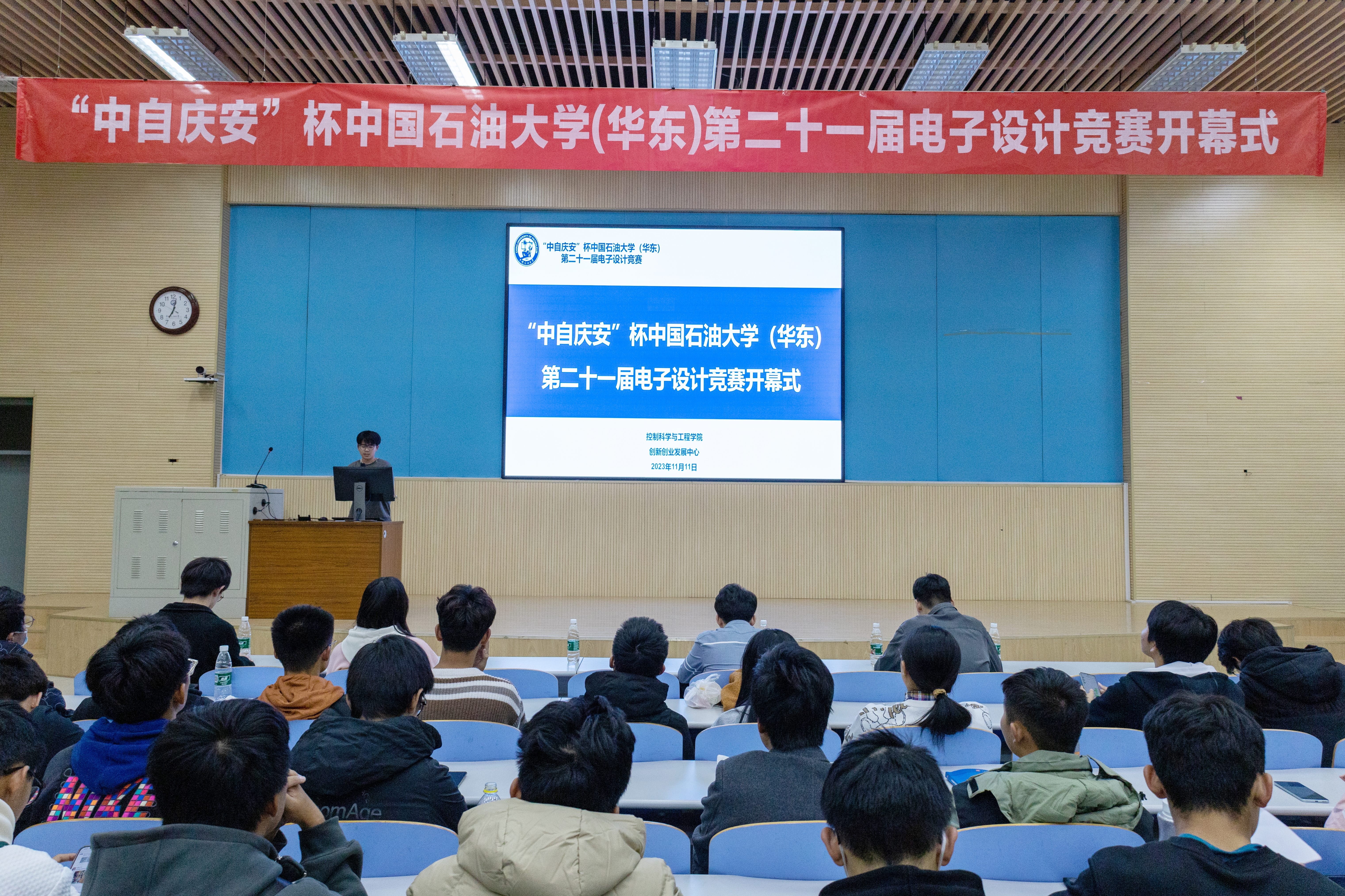 2023年11月11日晚七点,太阳成集团tyc33455ccwww双创中心在南教300举办中“自庆安杯”中国石油大学(华东)第二十一届电子设计竞赛开幕式暨赛事培训启动会。太阳成集团tyc33455ccwww创新创业发展中心指导老师翁泽受邀到场,全体第一期参赛队伍代表到场,电子设计协会副会长贾洪贺同学主持活动。