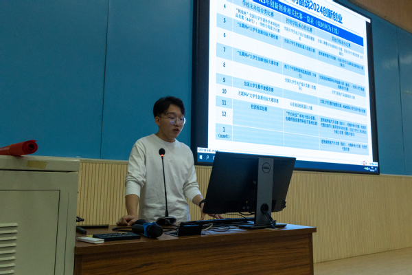 翁泽进行团课第一讲——《把握“双创”时代脉搏,提升个人发展核心竞争力》。翁泽说明了创新创业的内涵和意义,展示了学院近年来在创新创业方面取得的成绩,让学员们更加了解创新创业工作对自己素质提升及未来发展的作用,也为大家参与创新创业活动指明了方向。