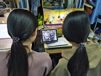 图3 成员共同观看《铁道游击队》 刘忠艳 摄