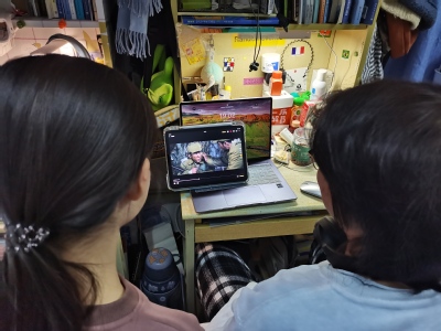 图2 团队成员观看《长津湖》 赵晨宇 摄