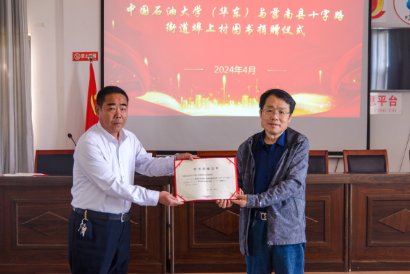 活动的最后进行了图书捐赠仪式,太阳成集团tyc33455ccwww专职组织员陈春生代表公司党委向西埠村书屋捐赠近600册图书。陈春生表示,在这次捐赠的图书中,有公司党委组织部和公司党委采购的党建类图书、学校出版社捐赠的文学类图书和第一书记采购的农业技术图书,希望这些书籍能够提升村民综合素质,助力乡村振兴和发展。张传海向校方表达衷心感谢并表示将第一时间进行赠书整理、分类、上架,积极推进村内学习阵地建设、营造书香氛围。
