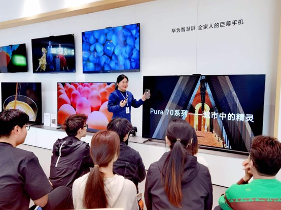 为促进员工对现代科技的直观认知,并鼓励推动员工走出校园,走进社会,切实了解高端科技在身边的具体应用,华为授权体验店(吾悦广场)在店内为同学们开展华为课堂,引导同学们走进科技,走进智慧,了解高端科技在智慧产品中的应用,并实际上手操作,感受华为带来的科技革新。