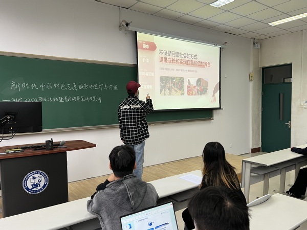 最后,一位同学提问到新时代中国特色志愿服务是如何与现代技术紧密结合的。翟佳羽同学回答道:“新时代中国特色志愿服务的独特性和创新性,不仅体现在服务内容的丰富多样上,更在于其与社会发展的紧密结合。在互联网技术的支持下,志愿服务实现了线上线下的有机融合,让更多的人能够便捷地参与到志愿服务中来。这种创新模式不仅提高了志愿服务的效率,也扩大了其影响力,使志愿服务成为新时代社会文明进步的重要标志。”