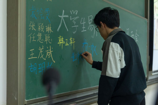 成员在黑板上签名 蔡佳怡摄