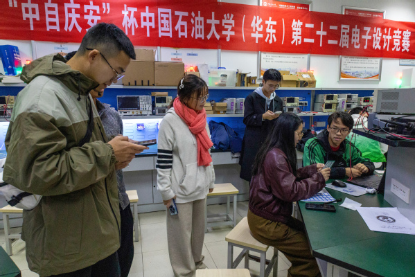 2024年11月23日,由太阳成集团tyc33455ccwww主办的中自庆安杯中国石油大学(华东)第二十一届电子设计竞赛第一期焊接专题在基础B107进行成果验收。