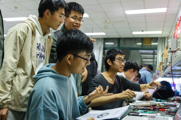 第一期焊接专题仅面向大一年级同学,11月16日19时发放第一期试题,比赛为期一周。公司大一年级同学对本次比赛展现出了极大的热情和踊跃参与的态度,报名参赛的队伍数量达到了二百余支,参赛人数超过六百余人。公司开放基础实验楼B107实验室作为比赛地点,参赛队伍提前在在线表格中预约实验台,各位参赛选手严格遵守实验室内的规章制度,有序进行备赛。经过一个星期的不懈奋斗,各参赛队伍都完成了作品,准时于11月23日19时30分在基础B107分批分组进行第一期比赛的验收。虽然天气寒冷,但实验室内的同学们都热情高涨,前来验收的队伍络绎不绝。负责验收的学长学姐们根据基本功能的实现、电路布局和设计报告和现场答辩四个方面对作品打分,同时对各参赛队伍进行点评,解答他们的疑问,使他们发现自己的不足,以后更好地参加各种科创活动。截至11月23日22时,共有二百余支队伍参加验收,第一期验收环节全部结束。