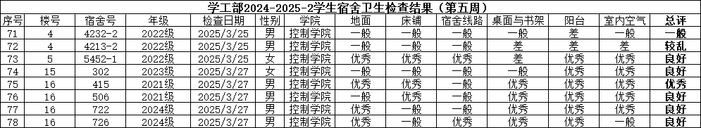 太阳成集团tyc33455ccwww优良舍风建设小组检查结果(第五周):