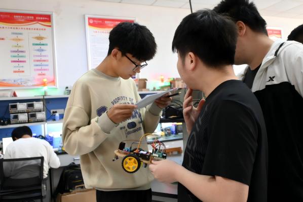 备赛期间,同学们运用所学知识,精心设计和调试小车,以应对比赛的各种拓展要求。验收现场,各参赛队伍的小车在赛道上按照比赛规则进行循迹,展现出精准的循迹能力。双创中心干事作为验收员,认真负责地对每支队伍的作品进行评估,从声光、停车等多方面综合考量进行打分。