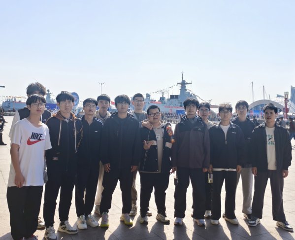 图一同学们军舰前合照 赵梓博摄