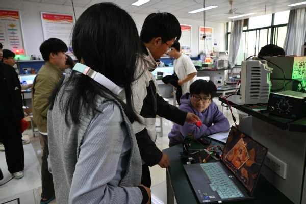 图1 参赛同学在现场调试作品 杨璇摄