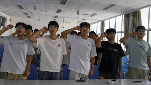 图三 班长朱俊豪带领全体同学宣誓 赵梓博摄