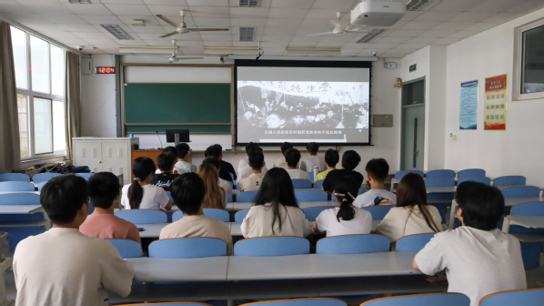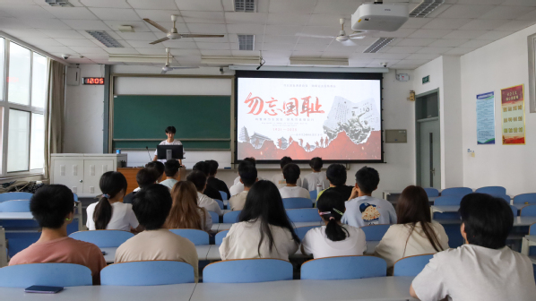 活动伊始,团支书赵梓博简要介绍“九一八”事变背景,阐明1931年这一历史事件对中华民族的深远影响。随后,他播放事变简介视频,纪实画面生动还原柳条湖事件、北大营沦陷及东北三省沦陷历程,让同学们直观感受那段交织着屈辱与抗争的岁月。
