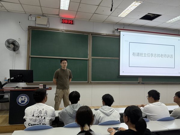 班主任李志帅老师随后致辞,对全体新生的到来表示欢迎,并就大学阶段的发展提出期望。