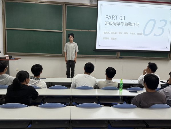 随后班会进入第三个环节——班级同学自我介绍。来自全国各地的同学依次登台展示自我。通过交流,同学们增进了彼此了解,也为班级注入了活力。